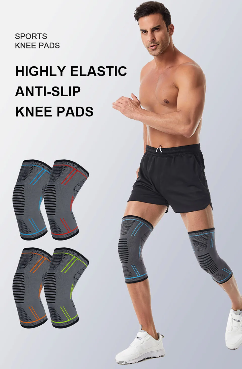 GTUBIKE 1PCS Compression Knee Support Sleeve Elastic Knee Pads Brace Springs Gym Sports Protector Basketball Volleyball Run