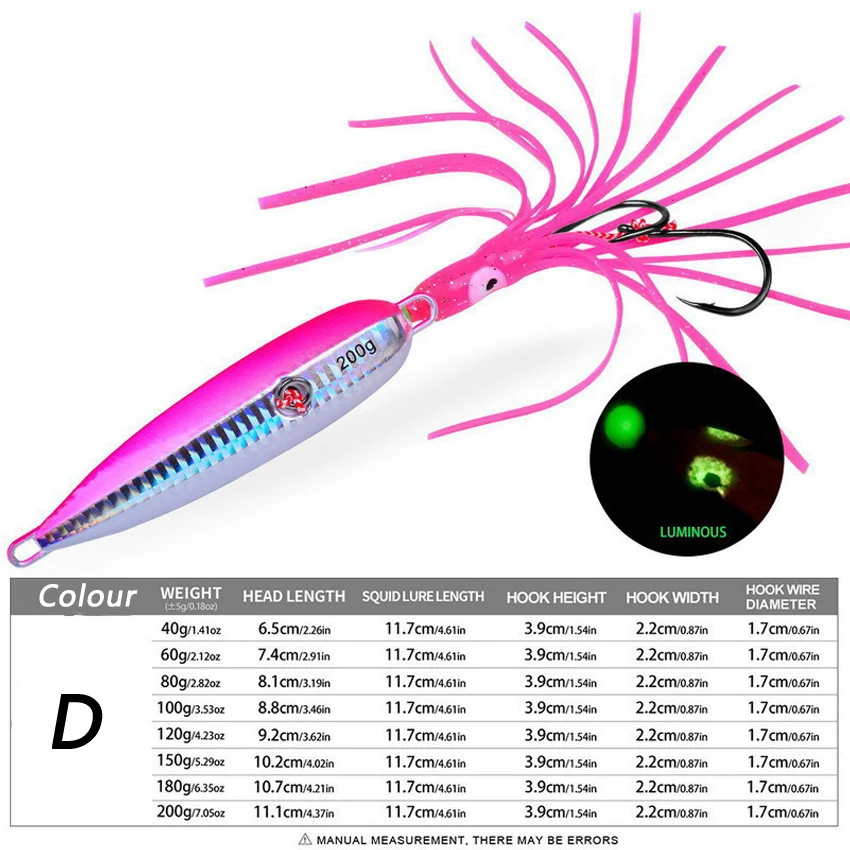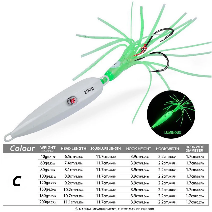 Inchiku Jig Lures 40g-200g - Luminous Squid Hook Saltwater