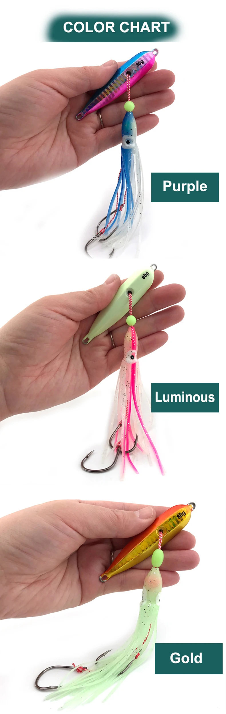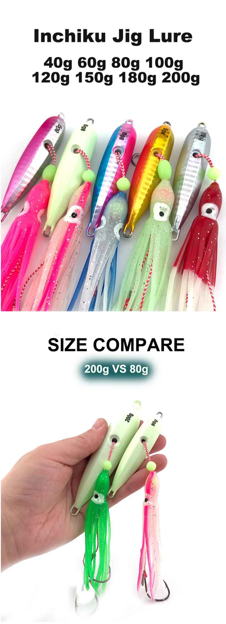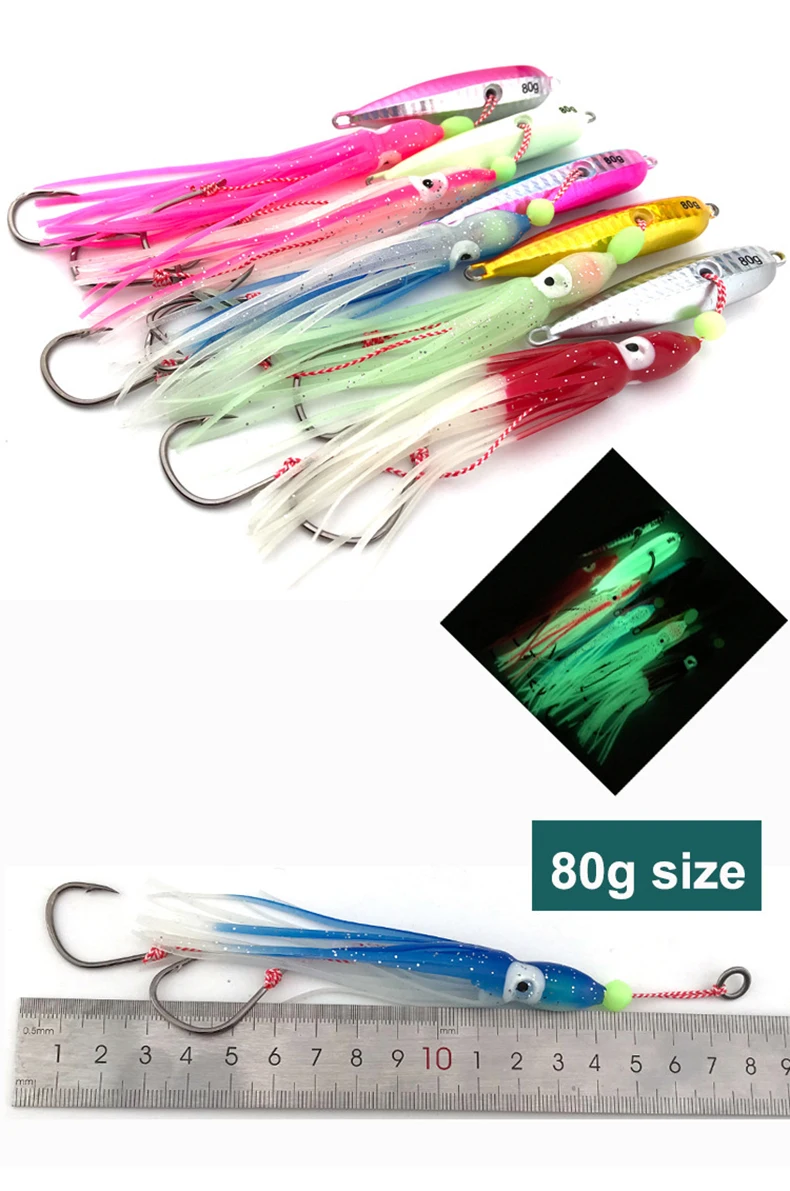 1Pcs Inchiku Jig Lures 40g-200g Slow Metal Jig Luminous Squid Hook Sinking Saltwater Spinning Fishing for Marlin Snapper Grouper