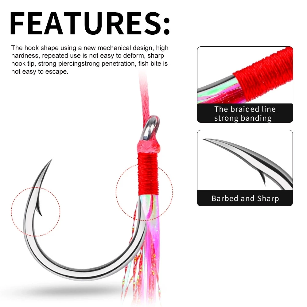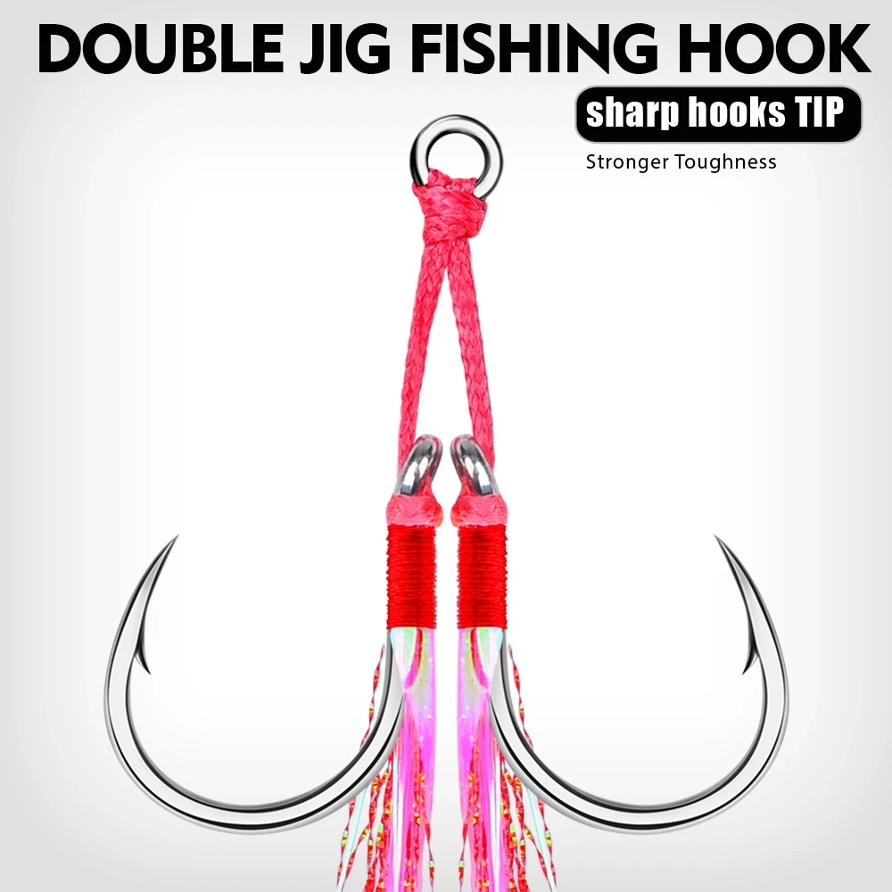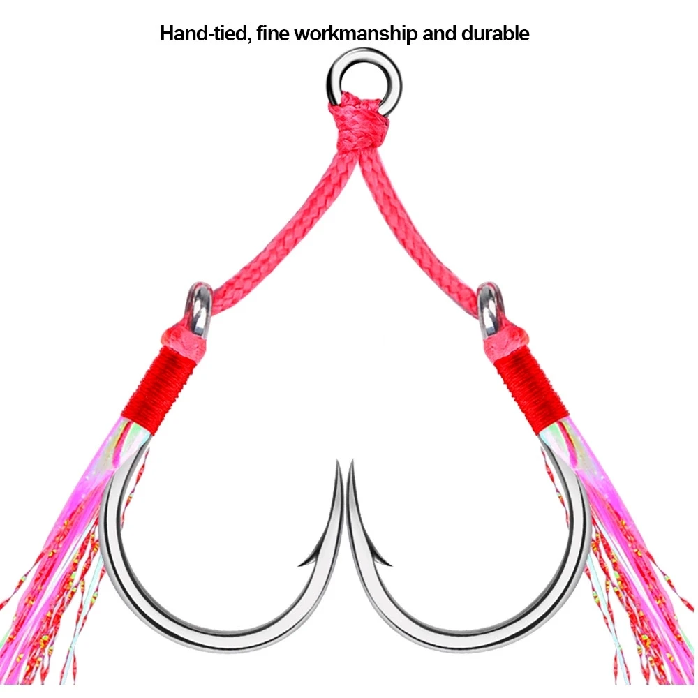 2X Fishing Assist Hooks High Carbon Steel Double Trouble Pink Skirts 5 Pack/10 Hooks