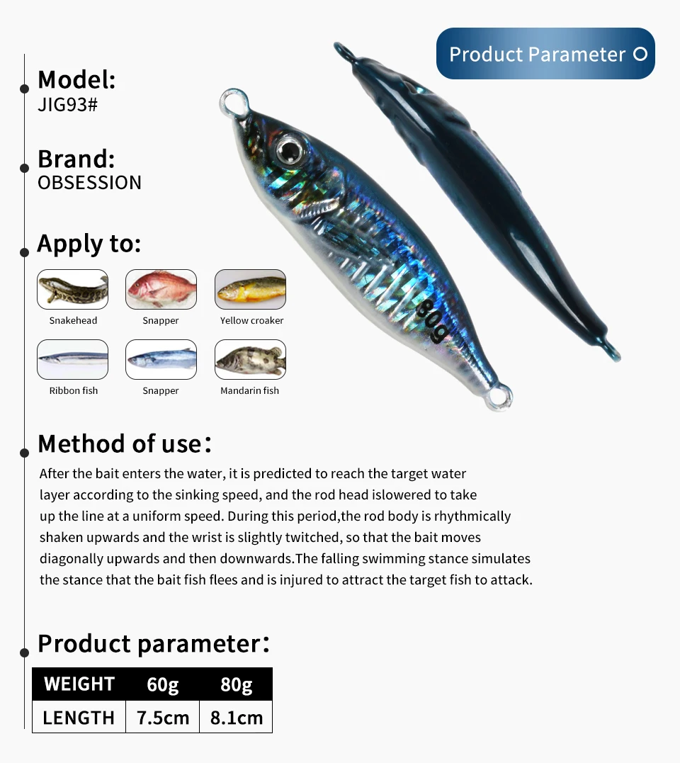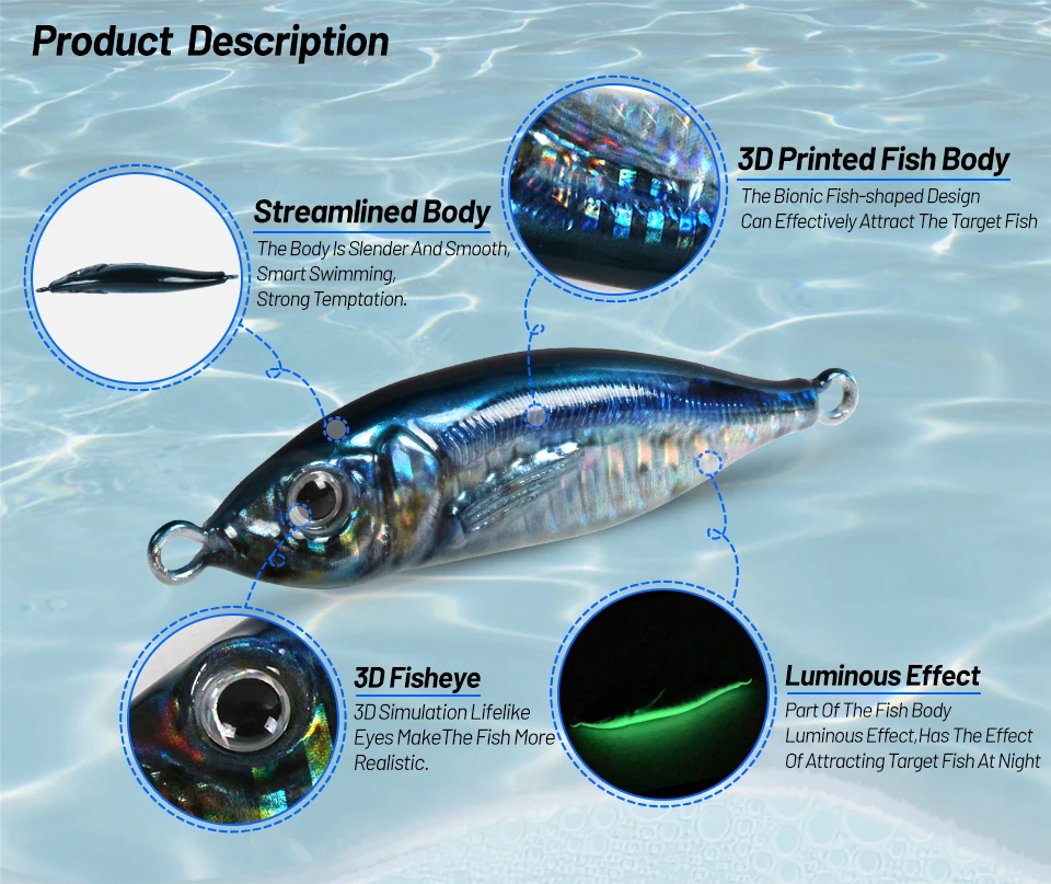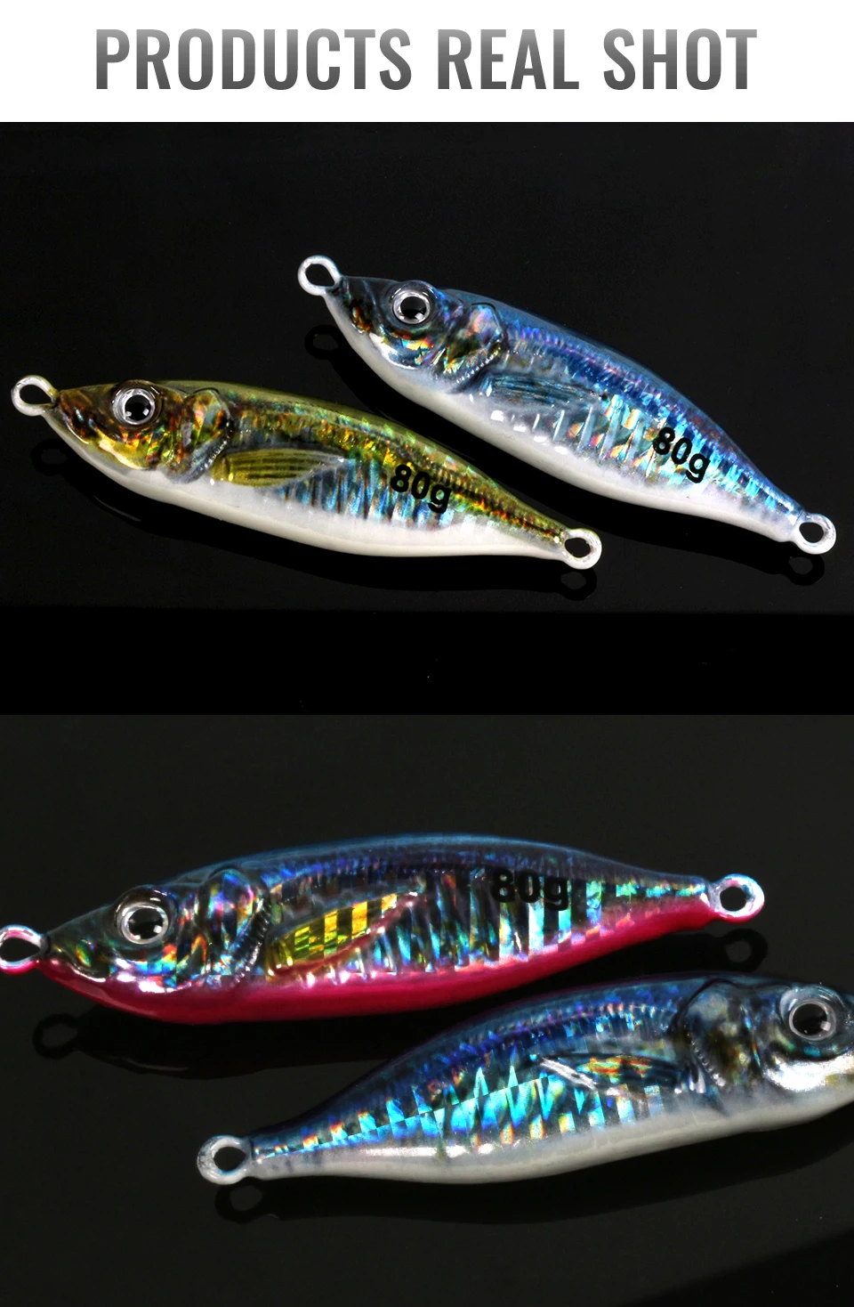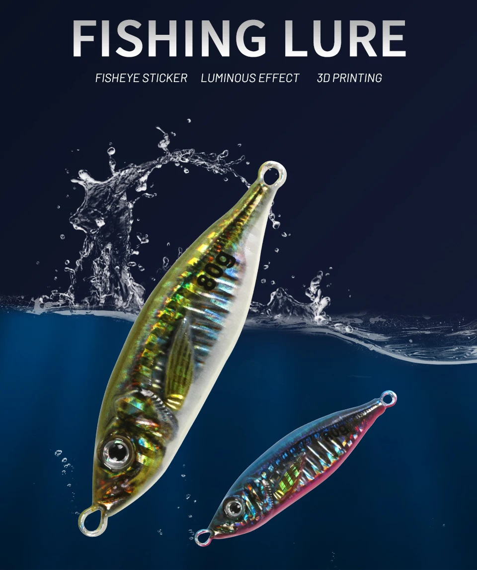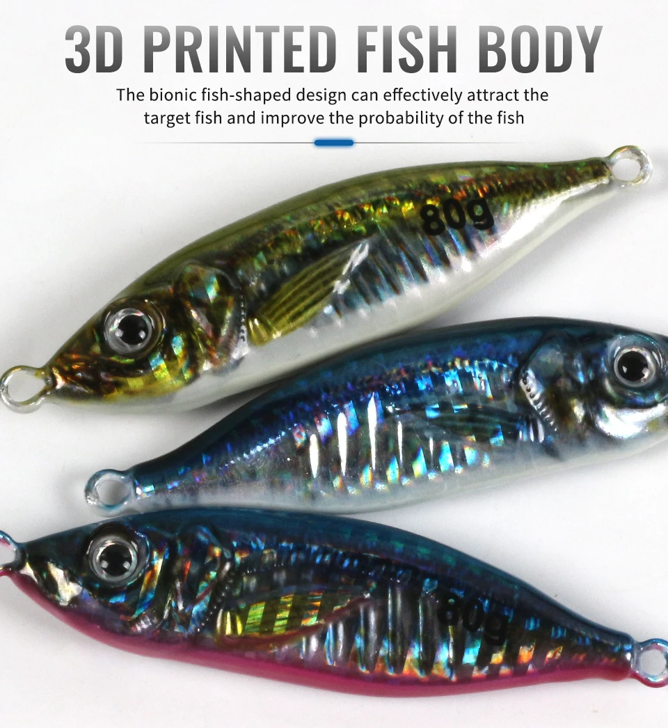 60g 80g Metal Jig Little Jack Fishing Lure Micro Jigging Lure 3D Print Slow Shore Casting Spoon Bait With Assist Hooks