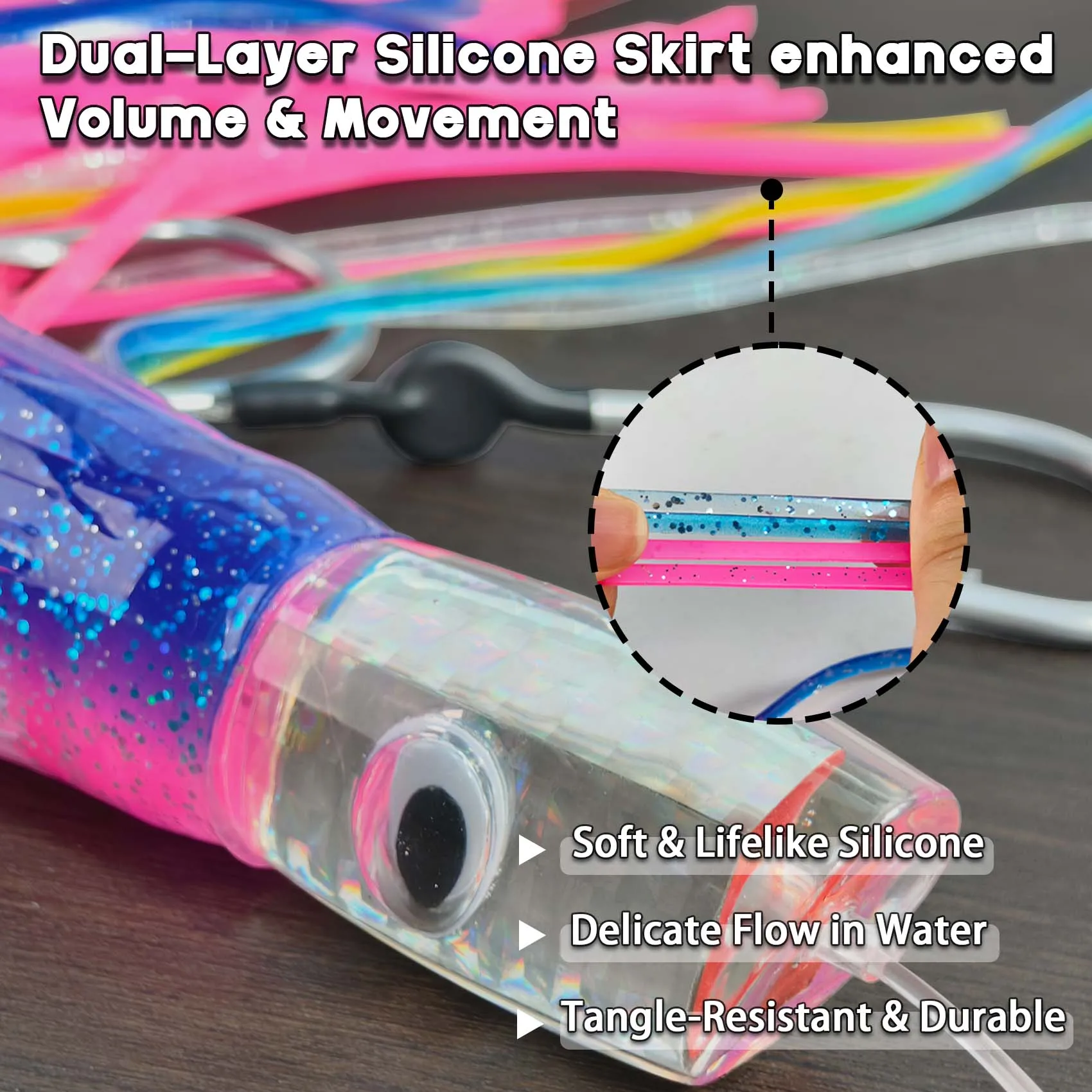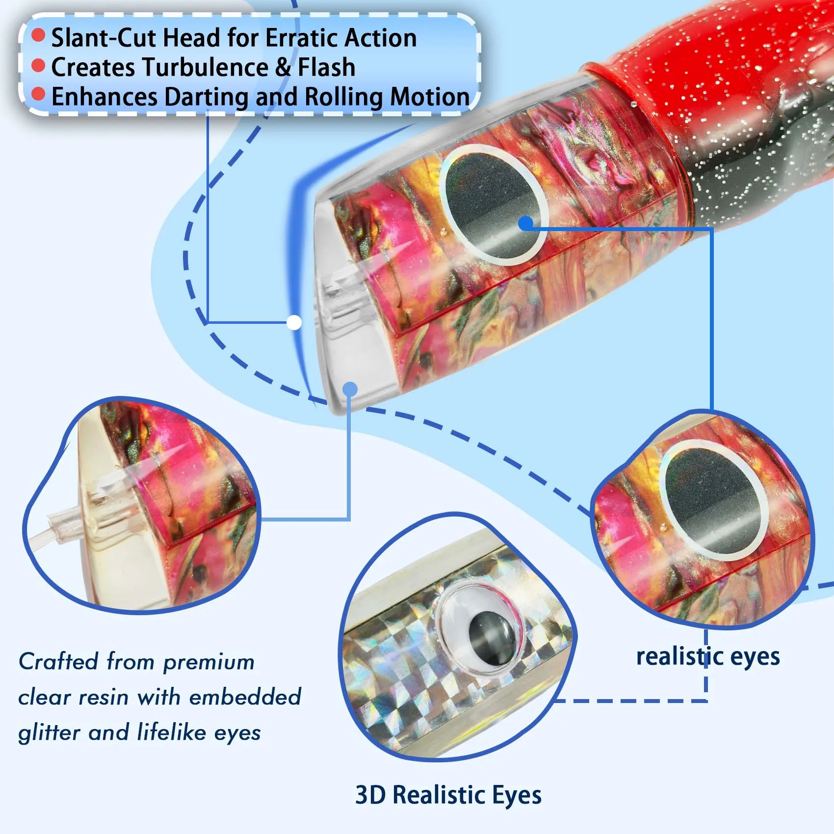 Aventik Resin Slant Head Trolling Lure with 3D Eyes and Dual-Layer Silicone Skirt for Tuna Mahi Mahi, Marlin, Wahoo and Sailfish