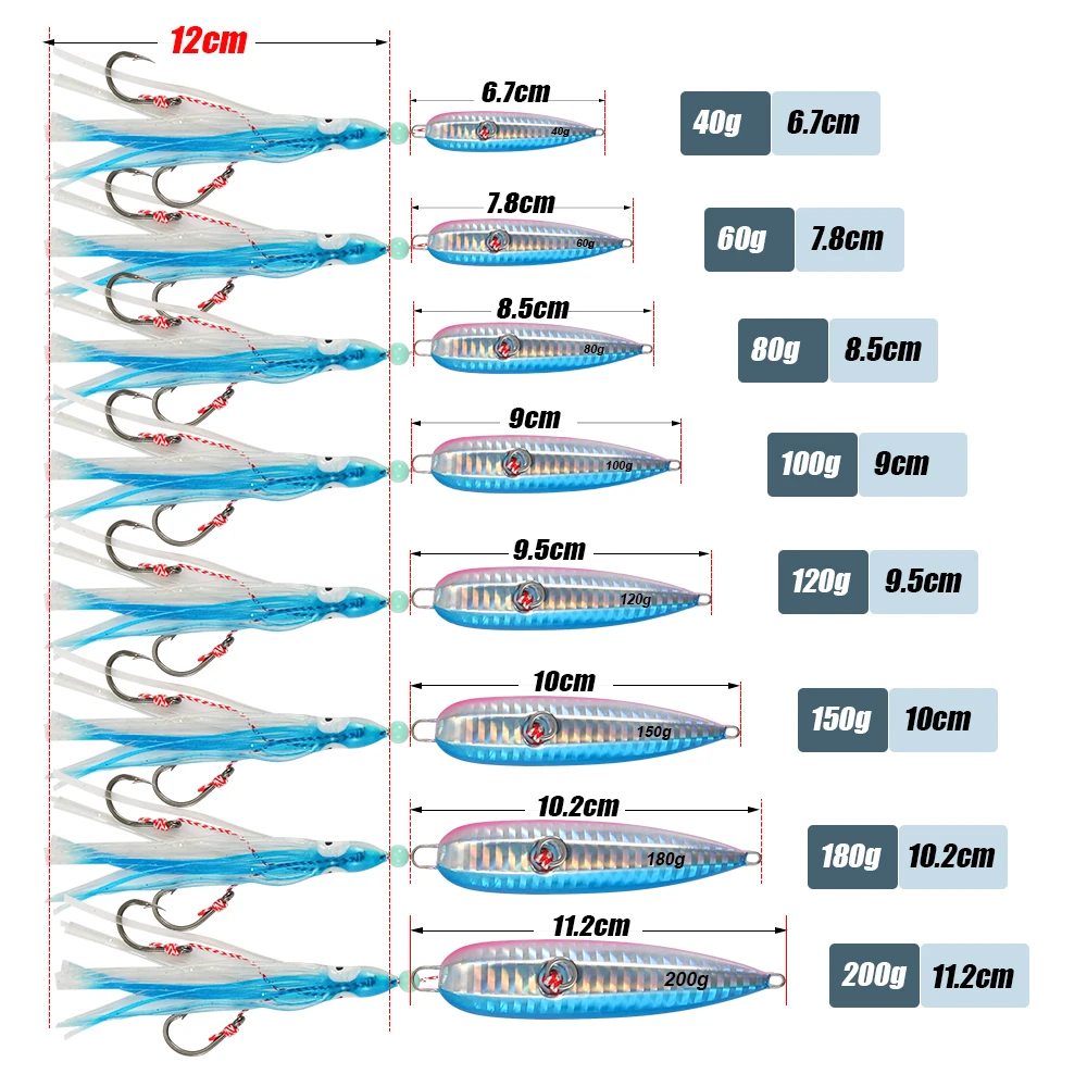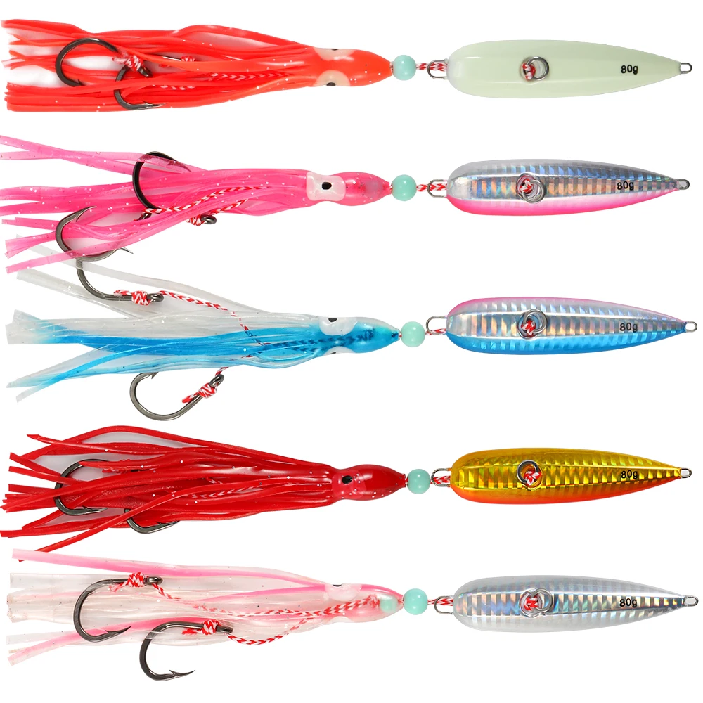 CASTFUN 40g 60g 80g 100g 120g 150g 180g 200g Inchiku Jig Bottom Ship Lures Metal Jig Octopus Skirt With Assist Hook Squid Bait
