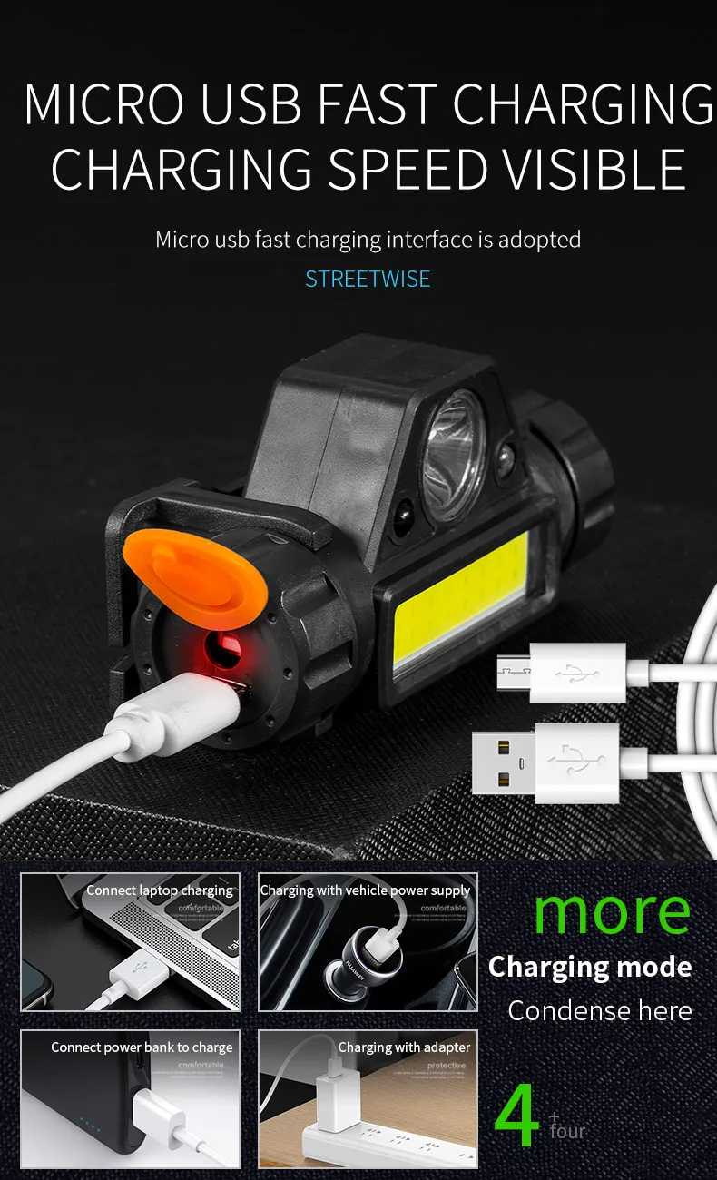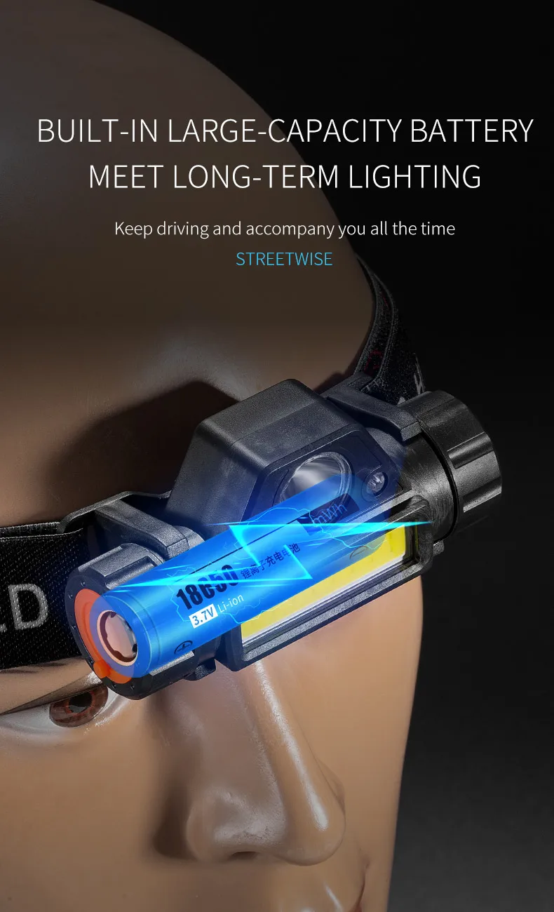 ⭐️ battery indicator - saves lots of extra batteries. Our headlamp has a built-in high-capacity lithium battery that can be charged via the included USB cable and cell phone wall charger. Its indicator light shows the battery level to remind you to charge the headlamp if it runs out of power.