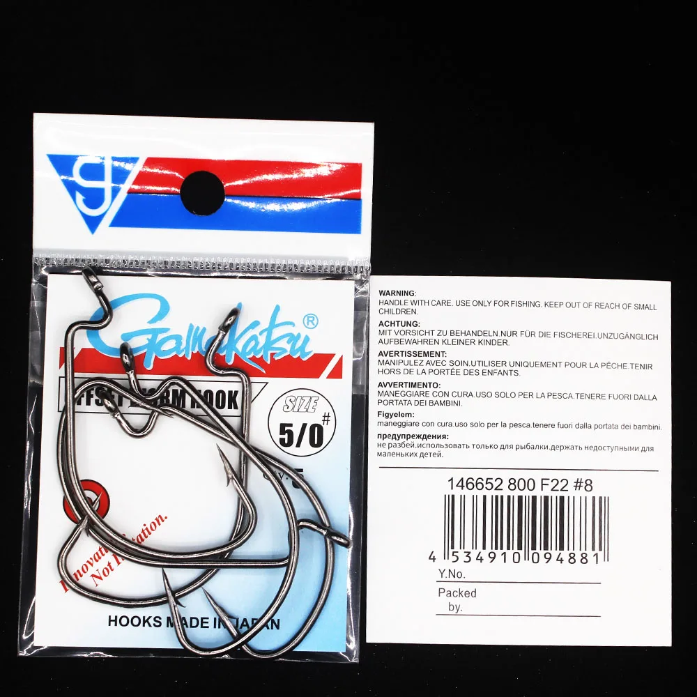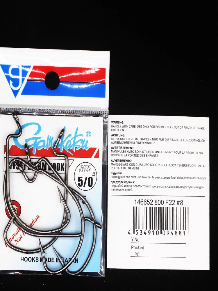 Gamakatsu OFFSET WORM HOOK (Width) Fishing Tee Hooks Sea Assist Hook Triple Treble Hooks Jig Head Fishing Carp Squid Hook