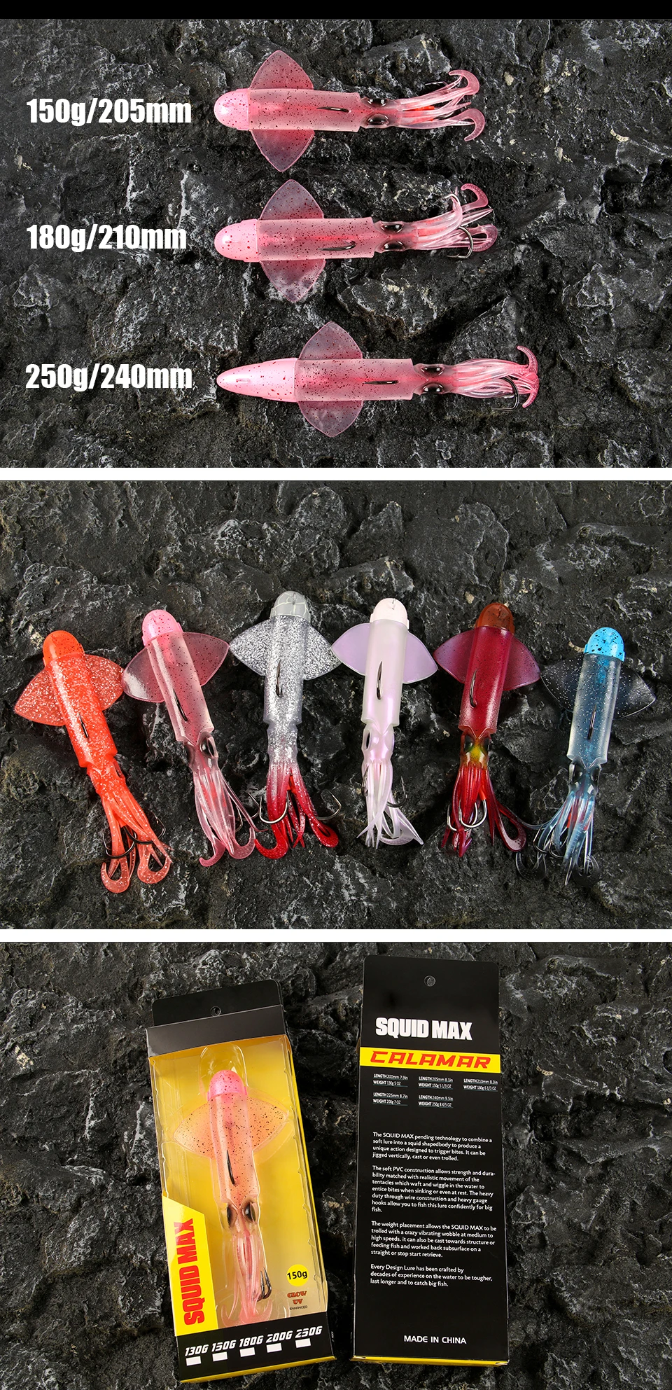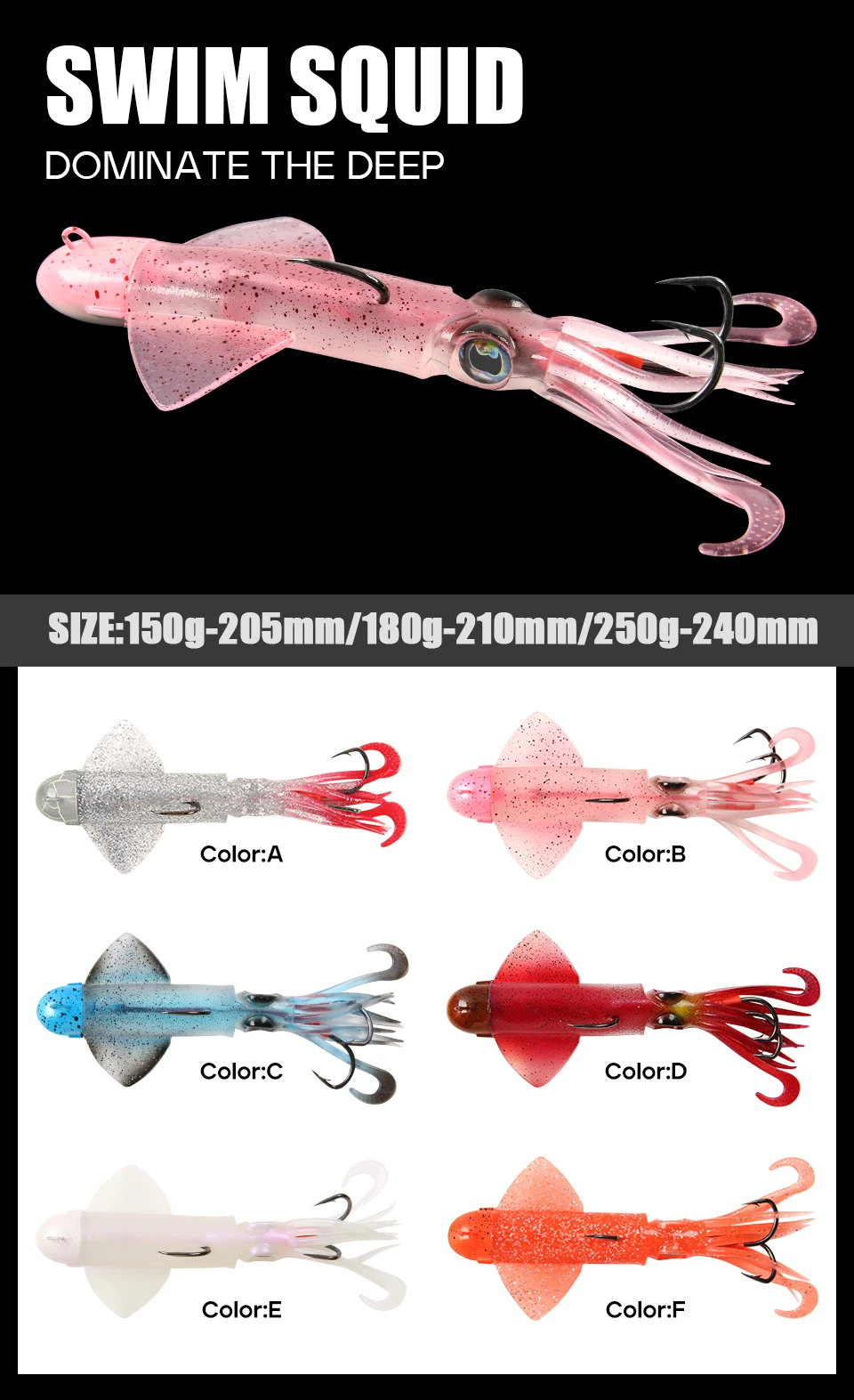 Glow UV 150g 180g 200g Luminous PVC Squid Octopus Skirt Sea Saltwater With Assist Hook Jigging Fishing Soft Lures Bait