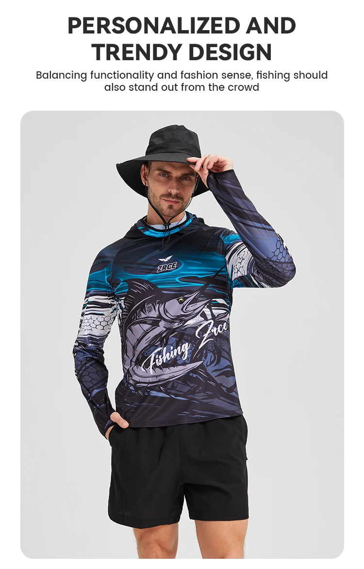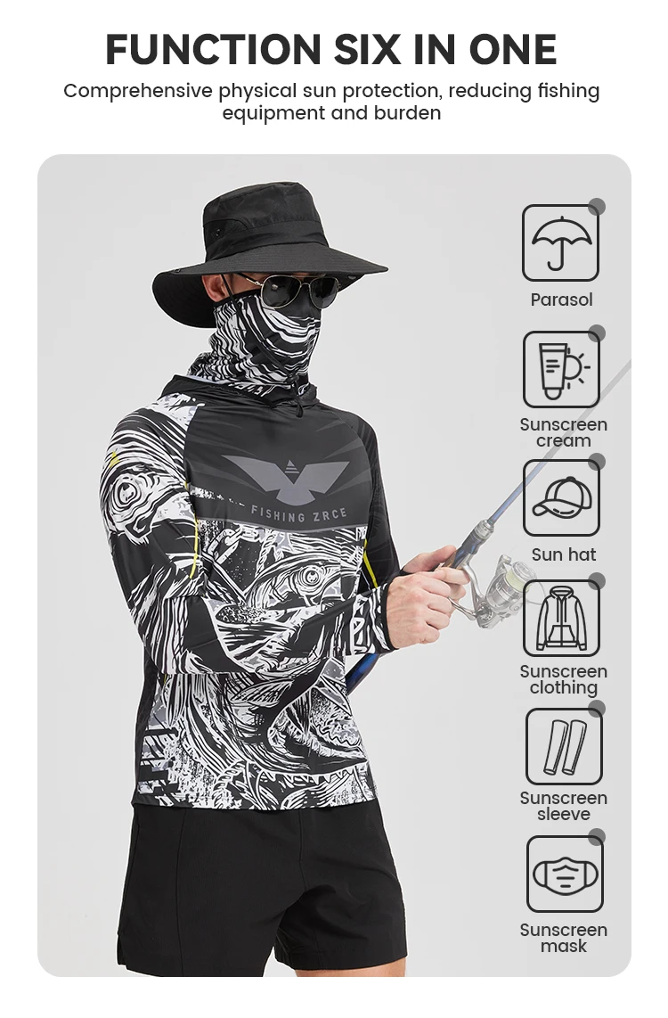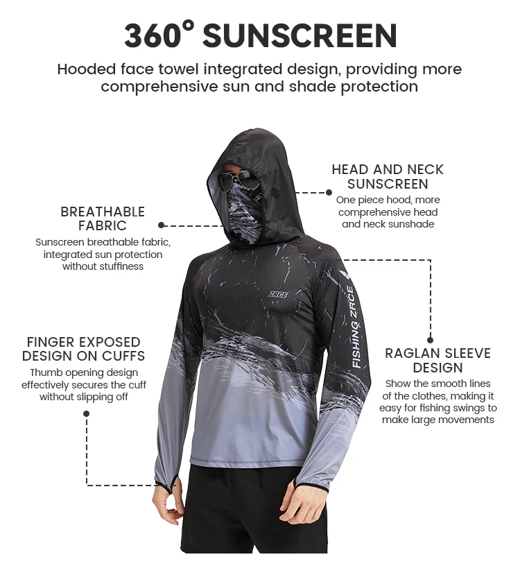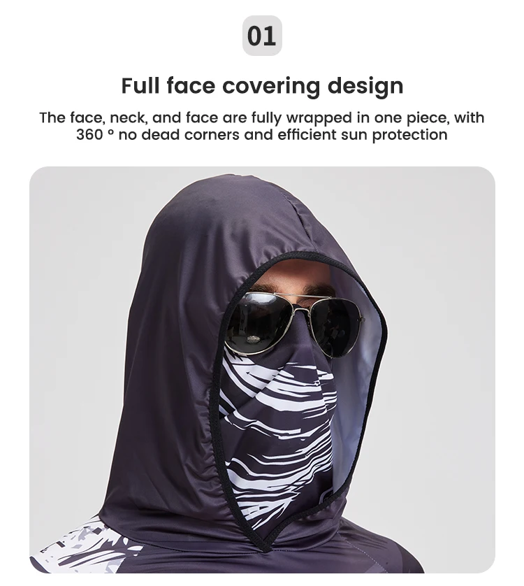 MarinPro Fishing Long Sleeve Hooded UV Shirt - Zip Mask