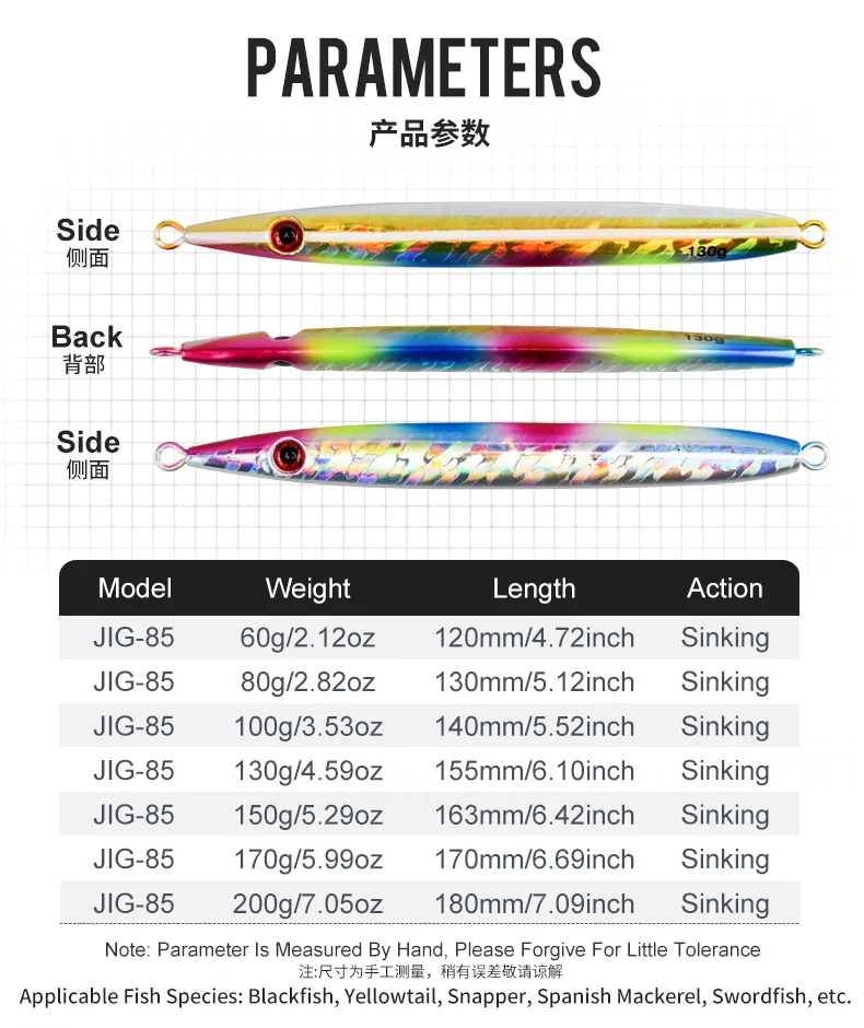 OBSESSION J85 100g 130g 150g 170g 200g Speed Falling Fast Sinking Vertical Jigs Luminous Hard Metal Casting Jig Lure Assist Hook