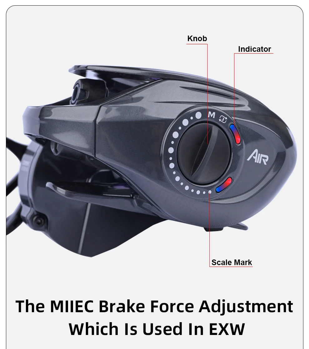 3.MIIEC's Model Switch: When you need to switch modes, first turn the brake knob to the mode shift button. Each time you cast, the mode will switch. After switching to the desired mode, turn the brake knob back to the brake force adjustment scale mark, then you can successfully switch modes. Then adjust the brake force according to usage requirements, and you're ready to use the reel.