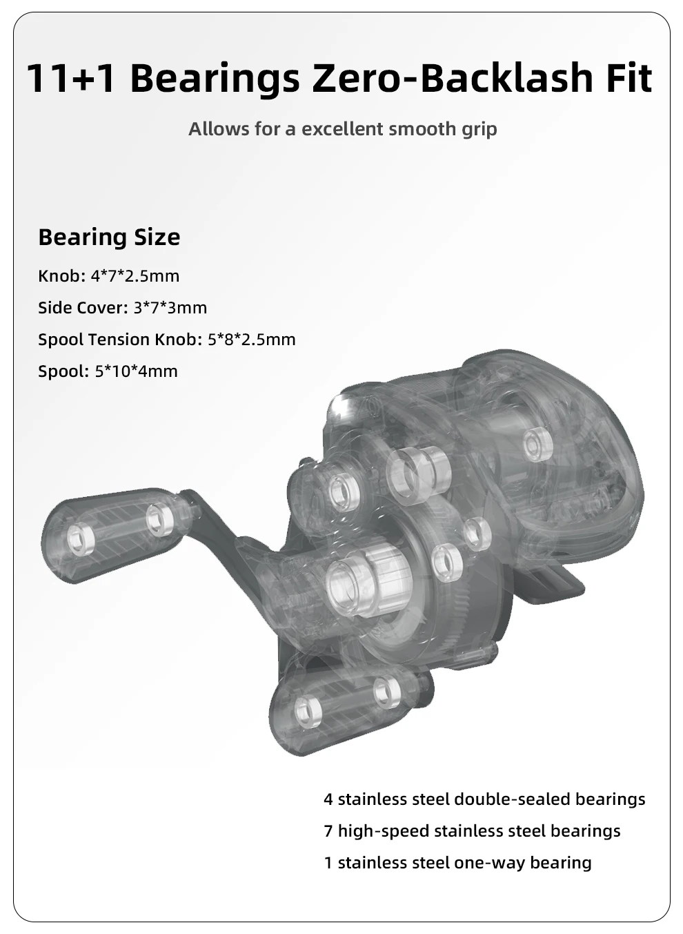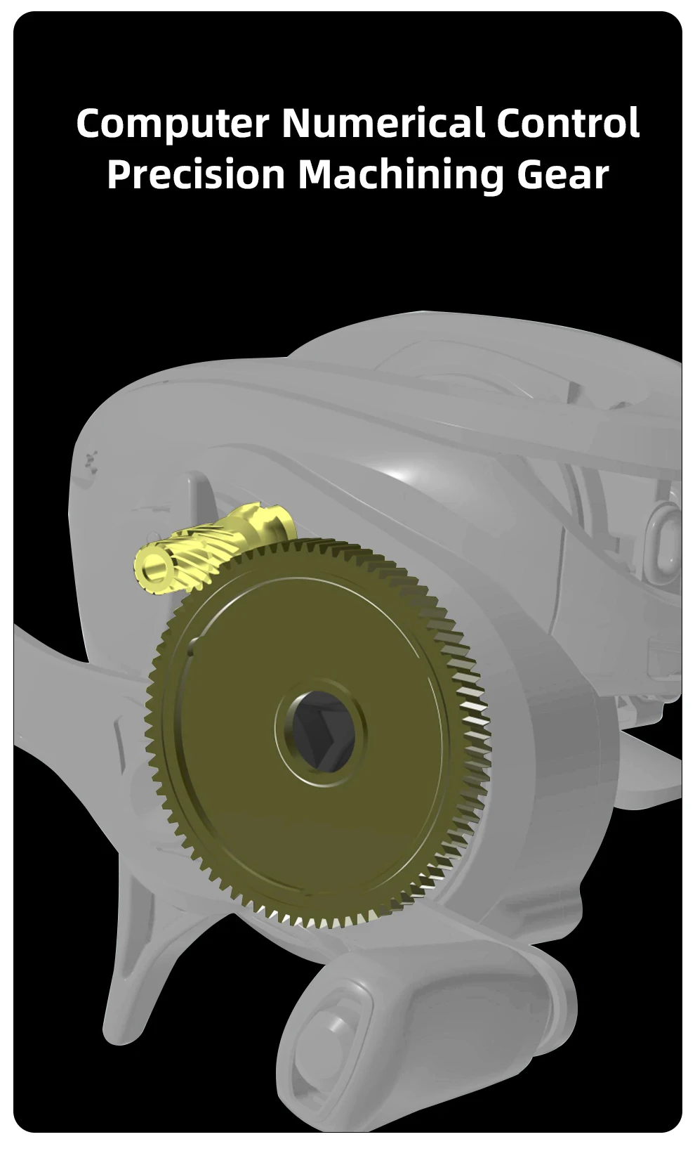 The main gear is made of 7075 aircraft grade aluminum,precision machining by using industry-grade HANAYIN60 gear hobbing machine and imported hobbing cutters. The small gears are made of hard copper alloy with excellent mechanical properties. High-quality materials and exquisite process bring smooth casting experience, and improve gear strength and durability.