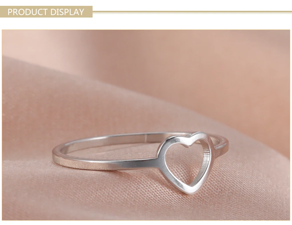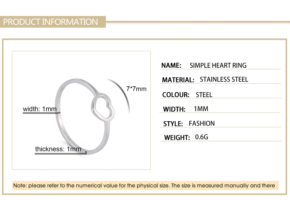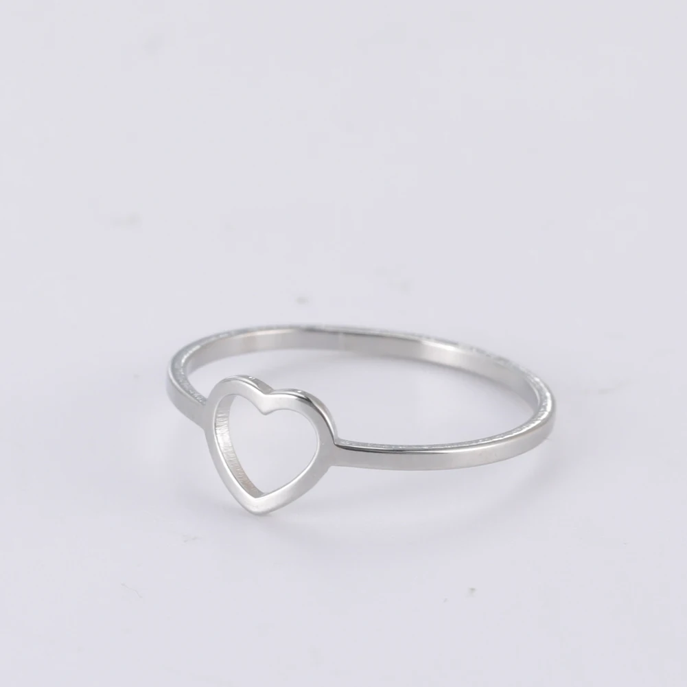 Skyrim New Simple Hollow Heart Rings for Women Stainless Steel Minimalist Finger Ring Jewelry Engagement Anniversary Gifts
