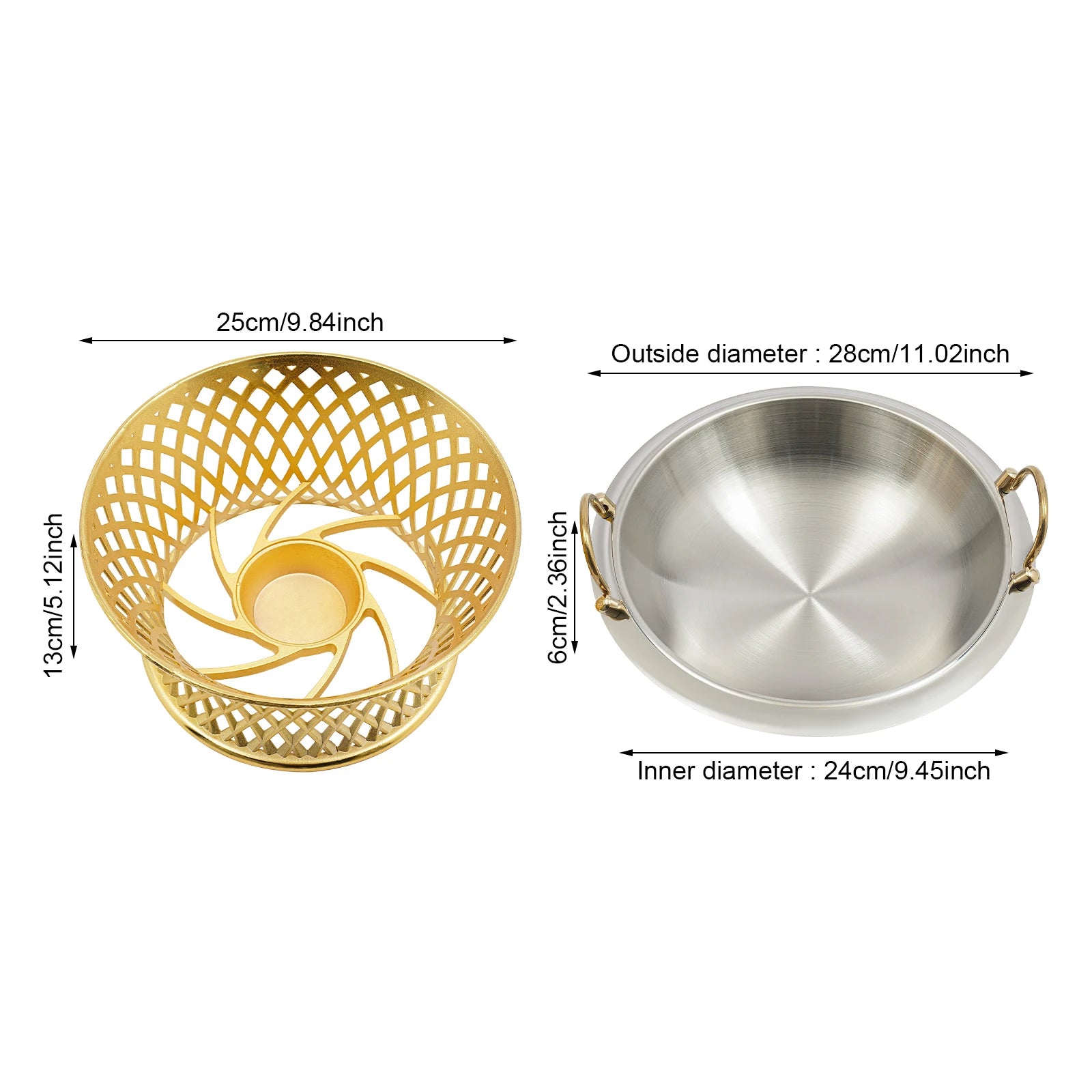- Stable, table-friendly design: Free-standing frame and compact footprint (pot inner Ø 24cm, exterior Ø 28cm, frame 25×13cm) fit most buffet runs or countertop setups.